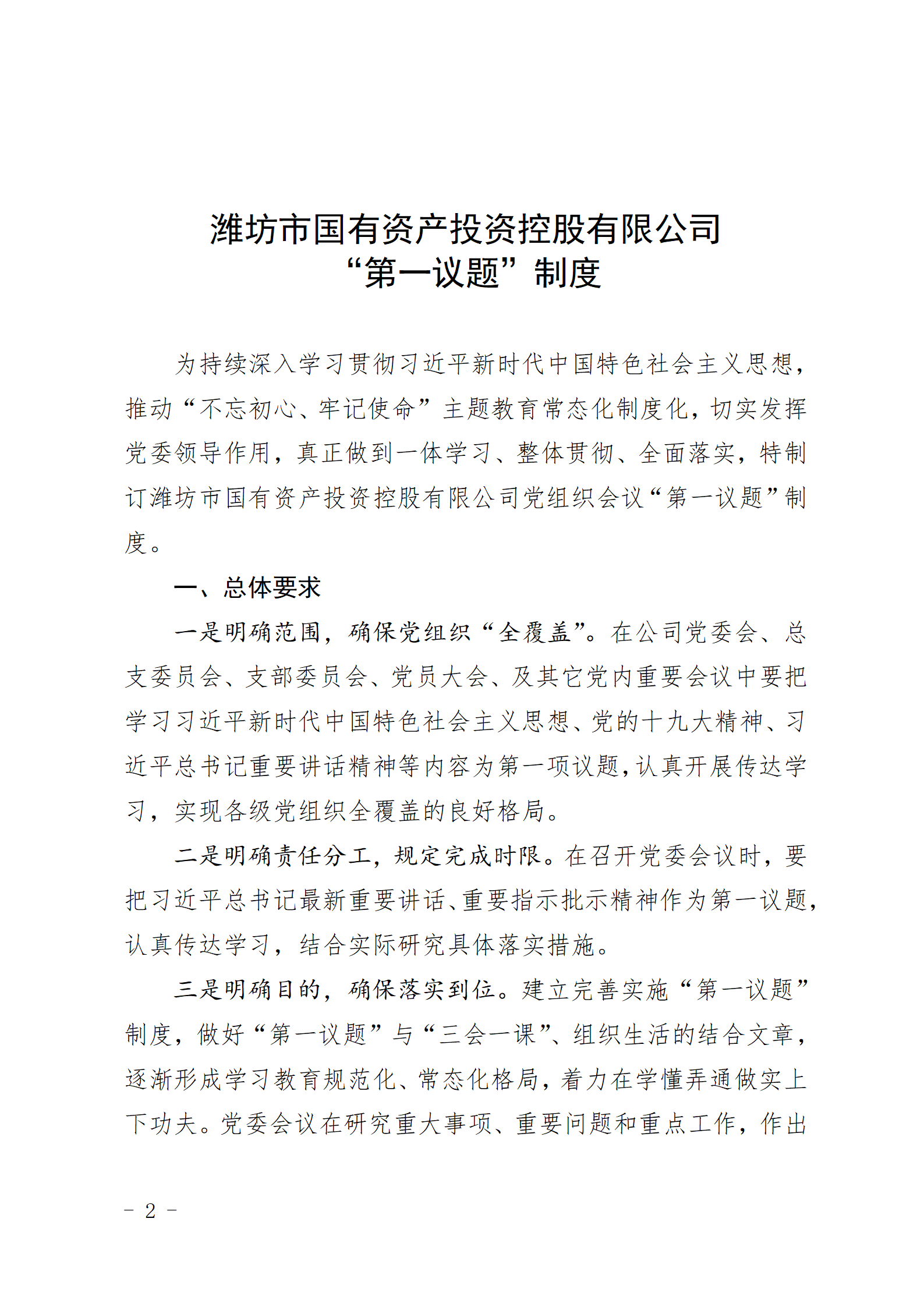 關于印發(fā)《濰坊市國有資產(chǎn)投資控股有限公司“第一議題”制定》的通知